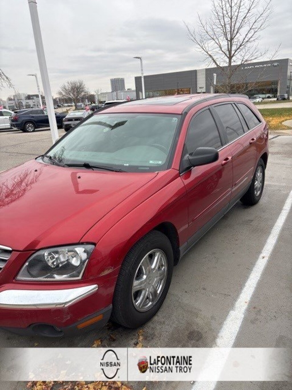 17" Aluminum Wheels, 17" Chrome Clad Aluminum Wheels, 2nd Row Overhead 7" Video Screen, 3rd row seats: split-bench, 4-Wheel Disc Brakes, ABS brakes, Air Conditioning, Alloy wheels, Auto-Dimming Rear-View Mirror, Auto-leveling suspension, Automatic Headlamps, Automatic temperature control, Bodyside moldings, Cigar Lighter, Compass, Driver door bin, Driver vanity mirror, Driver's Seat Mounted Armrest, Dual front impact airbags, Exterior Driver Auto-Dimming Mirror, Fog Lamps, Four wheel independent suspension, Front & Rear Ash Tray, Front anti-roll bar, Front Bucket Seats, Front Center Armrest, Front dual zone A/C, Front reading lights, Heated door mirrors, Heated Front Seats, Heated Second Row Seats, HomeLink Wireless Control System, Illuminated entry, Knee airbag, Leather Shift Knob, Leather steering wheel, Manufacturer's Statement of Origin, Outside temperature display, Overhead console, Panic alarm, Passenger door bin, Passenger seat mounted armrest, Passenger vanity mirror, Power 10-Way Driver, 4-Way Passenger Seat, Power Adjustable Pedals w/Memory, Power door mirrors, Power driver seat, Power Heated Fold-Away Mirrors w/Driver Auto-Dimming, Power Liftgate, Power Moonroof, Power passenger seat, Power steering, Power windows, Premium Cloth Low-Back Bucket Seats, Premium Leather Trimmed Bucket Seats, Radio/Driver Seat/Mirrors Memory, Rear air conditioning, Rear anti-roll bar, Rear reading lights, Rear Seat Video System Prep., Rear window defroster, Rear window wiper, Rear-Seat Video System, Remote keyless entry, Roof rack: rails only, Security system, Speed control, Steering wheel mounted audio controls, Supplemental Side Airbags, Supplemental Side Curtain Airbags, All Rows, Tachometer, Tilt steering wheel, Tire Pressure Monitoring System, Traction Control, Variably intermittent wipers, Vehicle Information Center, Video Remote Control, Wireless Headphones. Clean CARFAX. Inferno Red Tinted Pearlcoat 2004 Chrysler Pacifica FWD 4-Speed Automatic 3.5L V6 MPI 24V Recent Arrival!